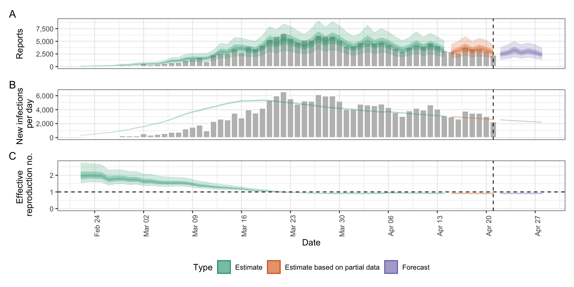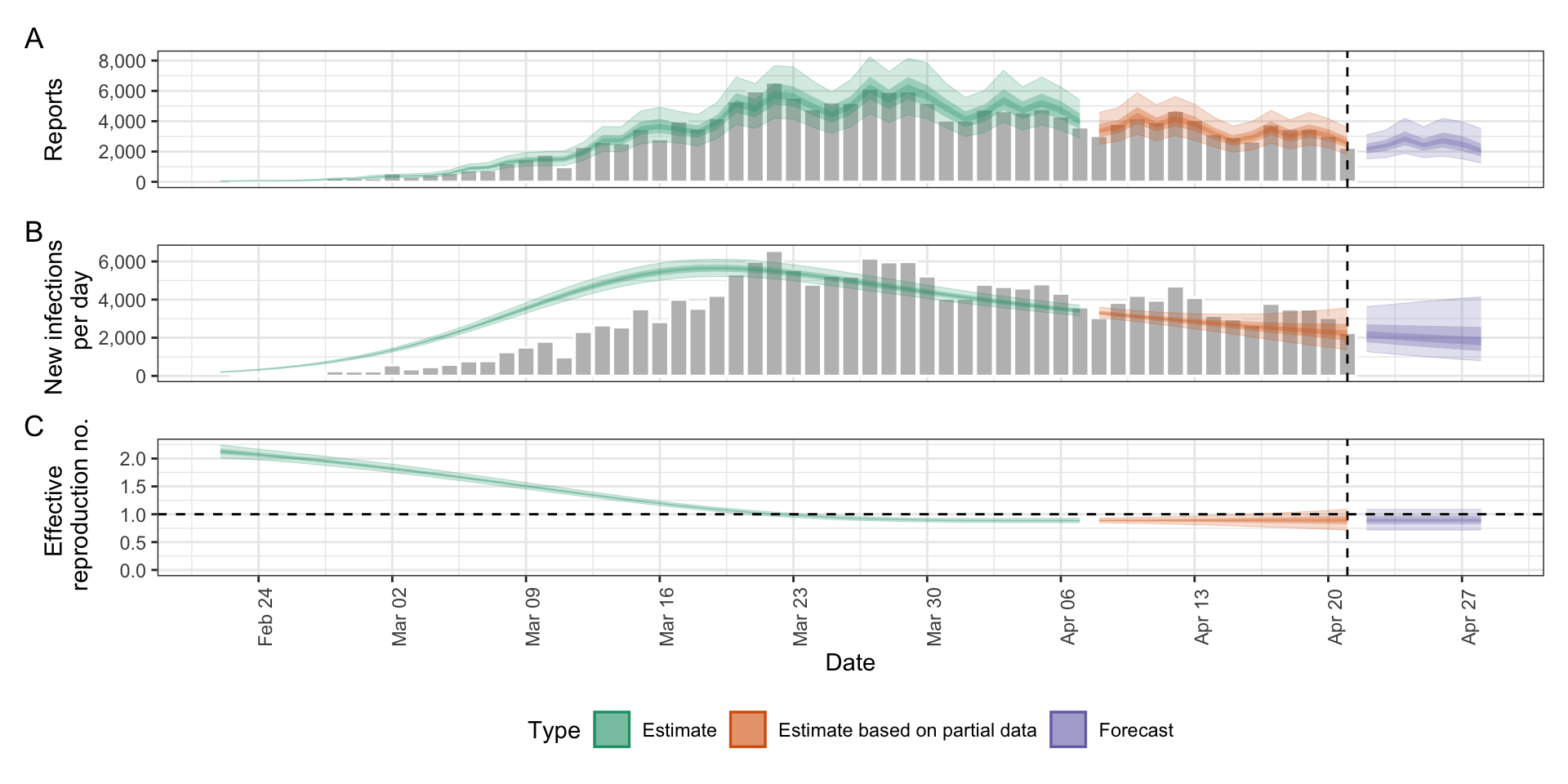3: Effective reproduction no. 0.89 (0.72 -- 1.1)